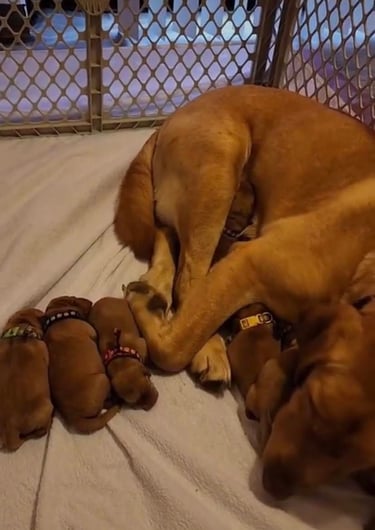 At Yeager's, socialization is paramount. From day one, our puppies are immersed in a world of human interaction, diverse sounds, and captivating sights. They receive personalized care and attention throughout, ensuring a seamless transition to their new homes. Our puppies undergo thorough health checks, receive essential dewormings, and obtain their first vaccination before embarking on their lifelong journeys with loving families.